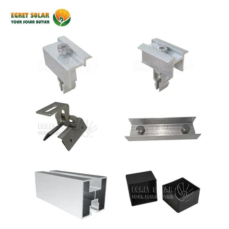ఈ రకమైన వ్యవస్థలో ప్రధానంగా సోలార్ ఎక్స్ బిగింపు, అల్యూమినియం ప్రొఫైల్ 40x40 మిమీ, రాపిడ్ ఎండ్ బిగింపు, రాపిడ్ మిడ్ క్లాంప్ & రైల్ కనెక్టర్ ఉంటుంది. రైలు పొడవును రైలు కనెక్టర్ ద్వారా విస్తరించవచ్చు. ఈ మొత్తం సర్దుబాటు చేయగల సౌర మెటల్ పైకప్పు వ్యవస్థను బాగా రక్షించడానికి, మీరు ఎండ్ క్యాప్ను జోడించవచ్చు.